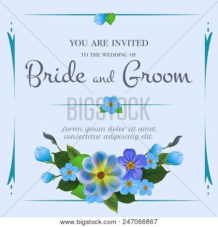 Wedding Invitation Design With Blue Flowers On Light Blue Background Royalty Free Cliparts Vectors And Stock Illustration Image 103594616