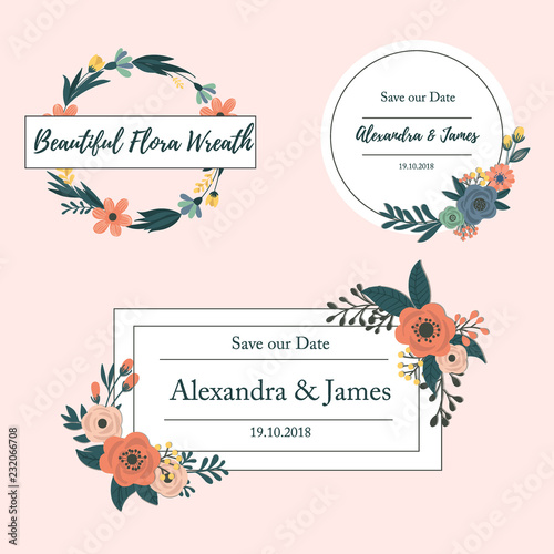 Set Of Wedding Invitation Card With Floral On Pink Background Wedding Celebration Vector Design Buy This Stock Vector And Explore Similar Vectors At Adobe Stock Adobe Stock