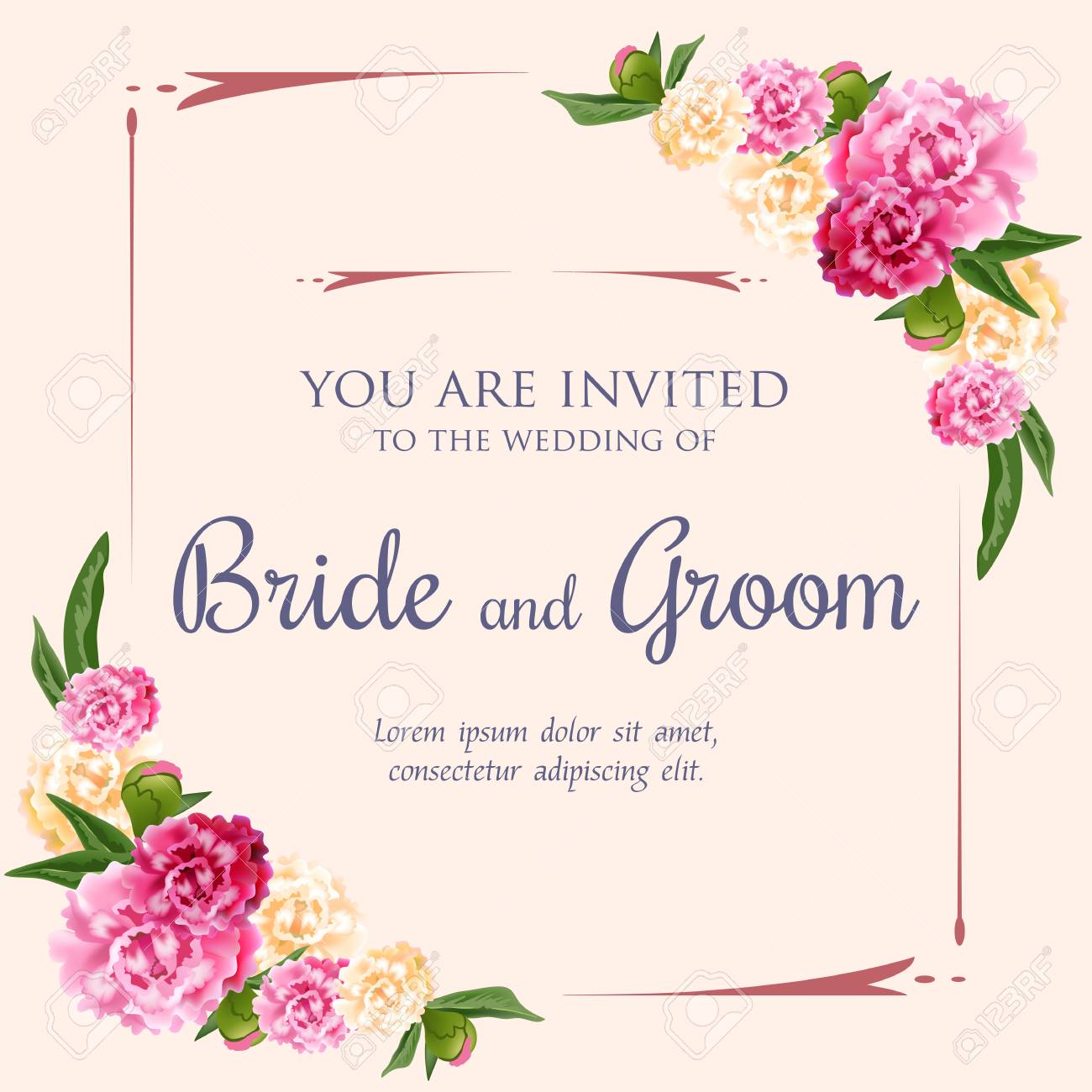 Wedding Invitation Design With Peonies And Frame On Pink Background Royalty Free Cliparts Vectors And Stock Illustration Image 103594618
