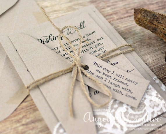 Rustic Wedding Invitations Handmade In Australia 25 Printed Invitation Cards Ebay