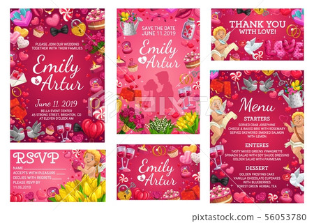 Wedding Invitation Save The Date And Menu Stock Illustration 56053780 Pixta