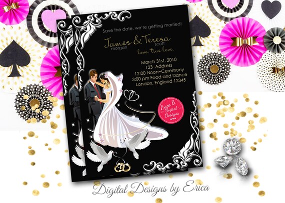 His And Hers Dove Wedding Invitation Wedding Black And White Etsy