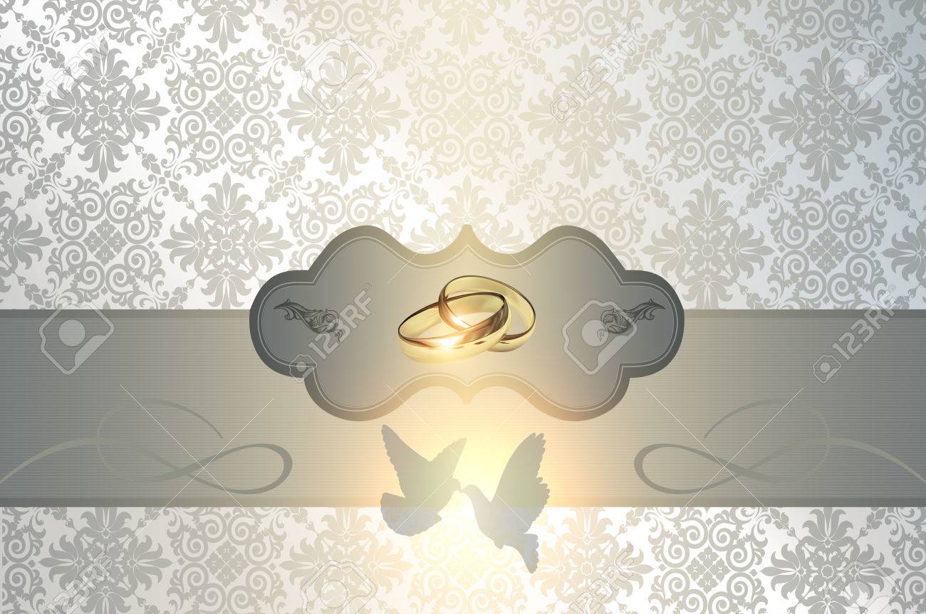 Wedding Invitation Template Decorative Floral Wedding Background With Gold Rings And Scroll Of Parchment And White Doves Canstock