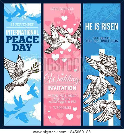 Vector Stock White Dove Sketch Poster Of Wedding Invitation Stock Clip Art Gg104960035 Gograph