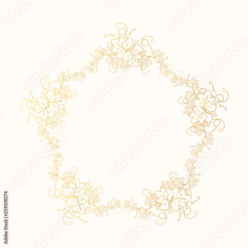 Golden Grape Frame With Vine Branches Bunch Of Berries And Leaves Ornate Decoration Gold Border For Wine Menu Label Design Or Wedding Invitation Vector Foliage Background Buy This Stock Vector And
