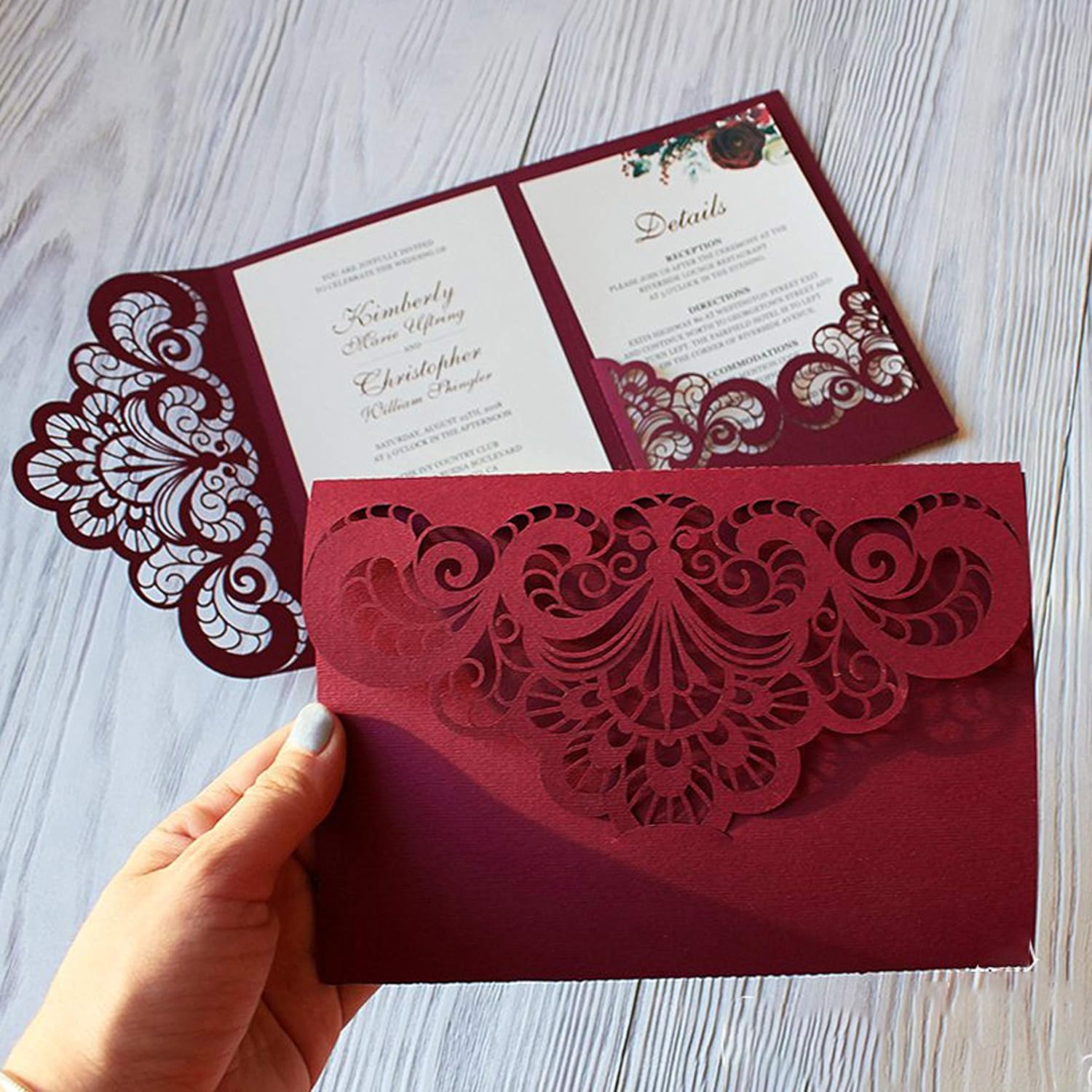 20pcs Burgundy Vellum Wedding Invitations Cards With Printed Floral Inner Sheets And Envelopes With Gold Border For Bridal Shower Engagement Invite Amazon Co Uk Kitchen Home