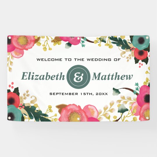 Modern Floral Pink Teal Large Wedding Banner Zazzle Com
