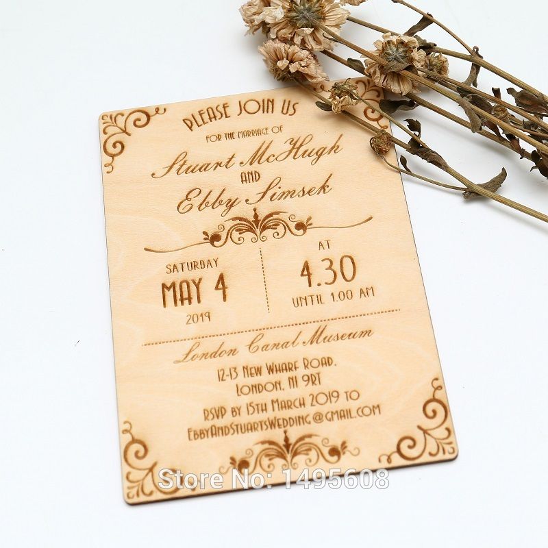 Wood Wedding Invitation Art Deco Scroll Design Wedding Invitation Real Wooden Invite 98sp Boxed Greeting Cards Business Birthday Cards From Majiu02 81 46 Dhgate Com