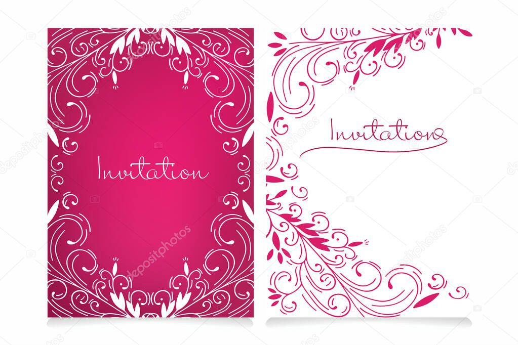Beautiful Invitation Card Set With Copy Space For Your Text Decorative Hand Drawn Openwork Vector For Design On A Pink And White Background Invitation For Wedding Valentine S Day Birthday Premium Vector